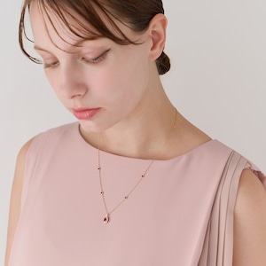 繊細なチェーンにはベゼルセッティングのラウンドルビーを等間隔に配置し、全体にリズムと優雅なムードを演出。