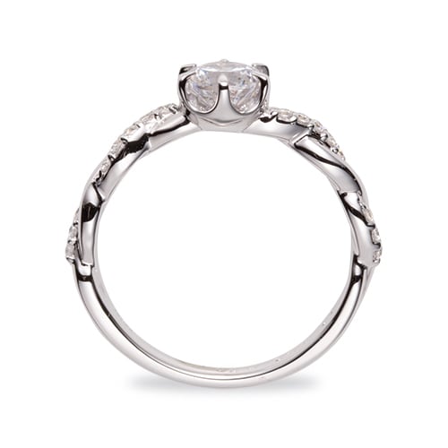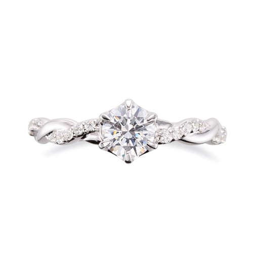 中心に輝く 0.5カラットのダイヤモンドは、まるで祝福の光を受けたように凛と輝き、アームに敷き詰められたメレダイヤがそのきらめきを優雅に引き立てます。
